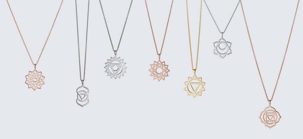Price: Crown Chakra Yellow Gold Necklace: $780 HKDBrow Chakra Silver Necklace $750 HKDHeart Chakra Rose Gold Earrings $480 HKD